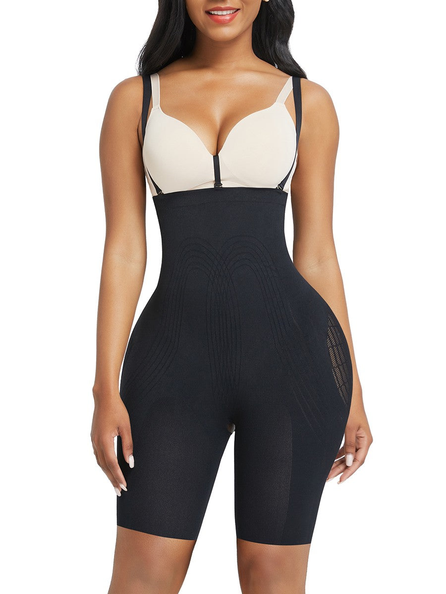 Black Full Body Shaper Open Bust Adjustable Straps Smooth Abdomen