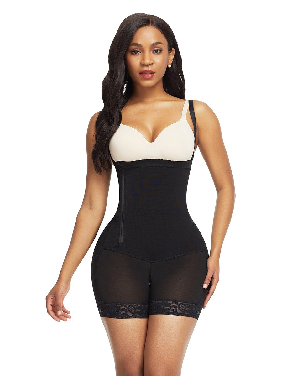 Full Body Shaper Glue Zipper Open Crotch Lace Slimming Stomach