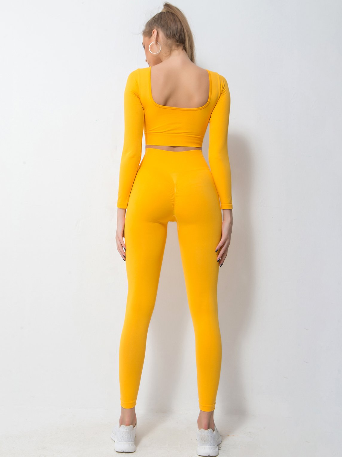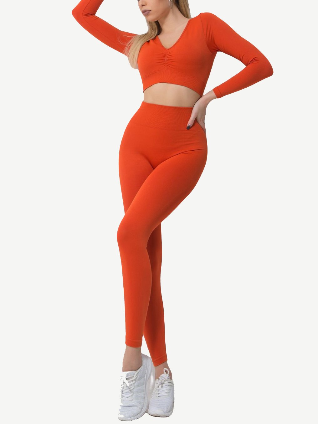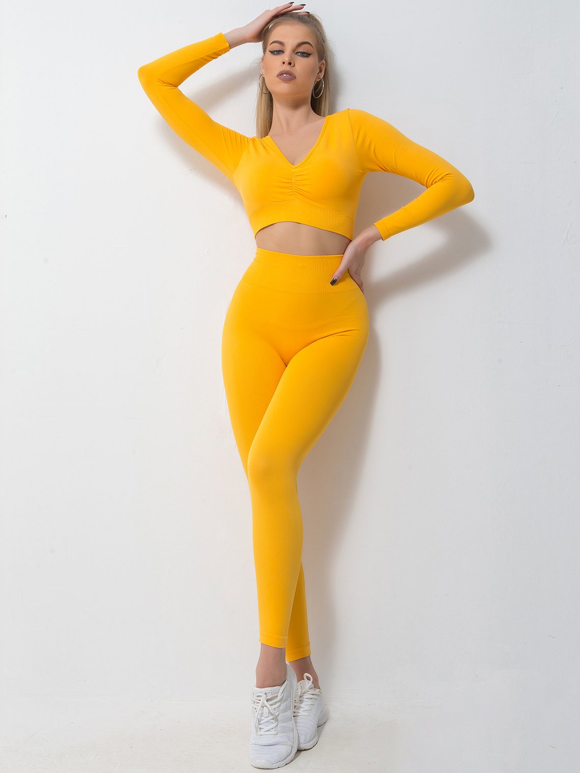 2-piece solid color soport sets v neck breathable wicking fitness workout sportwear
