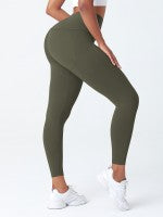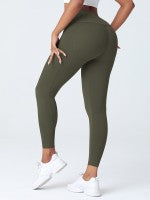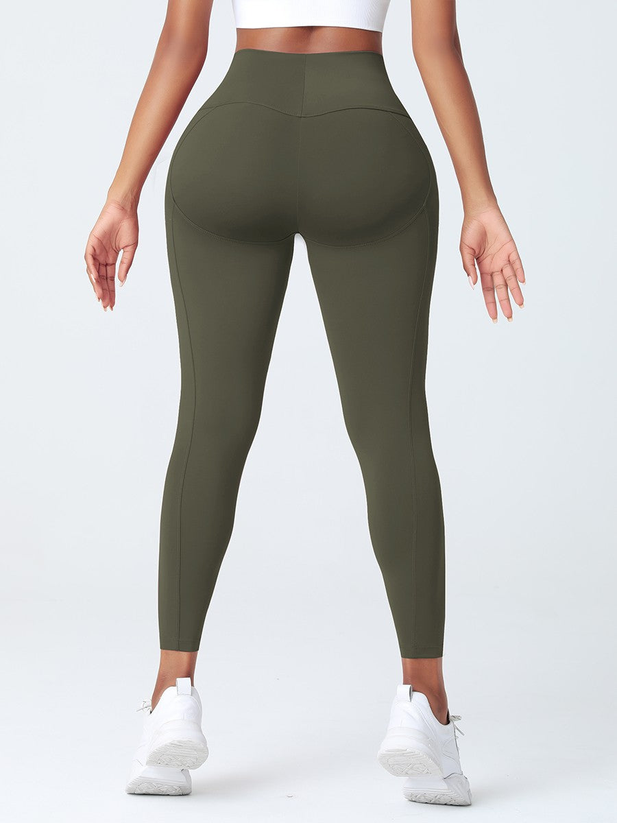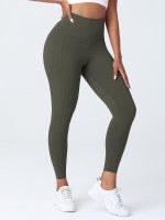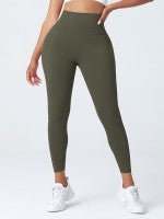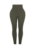 Achieve your fitness goals while keeping stylish and comfort with the Army Green Wide Wasitband 4-Way Stretch Yoga Pants Preventing Sweat.