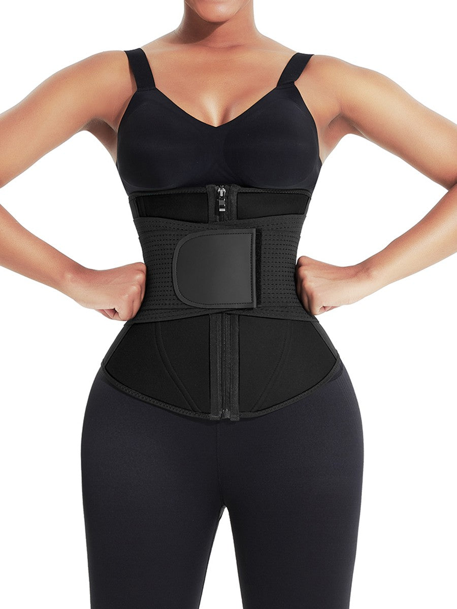Black Neoprene Waist Trainer 6 Steel Bones Zipper Closure Smooth Abdomen