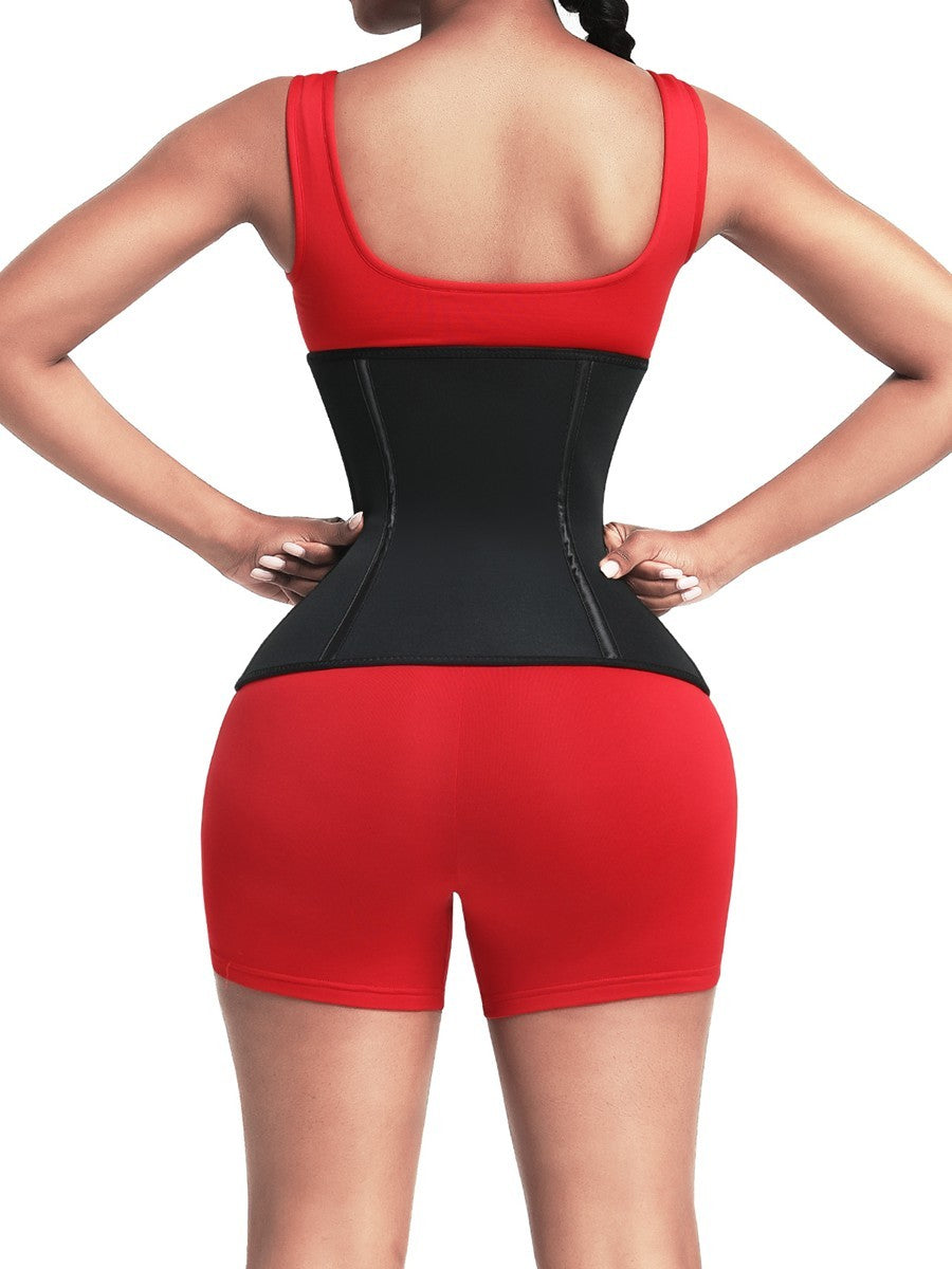 Black 6 Steel Bones Sweat Waist Trainer With Belt Flatten Tummy