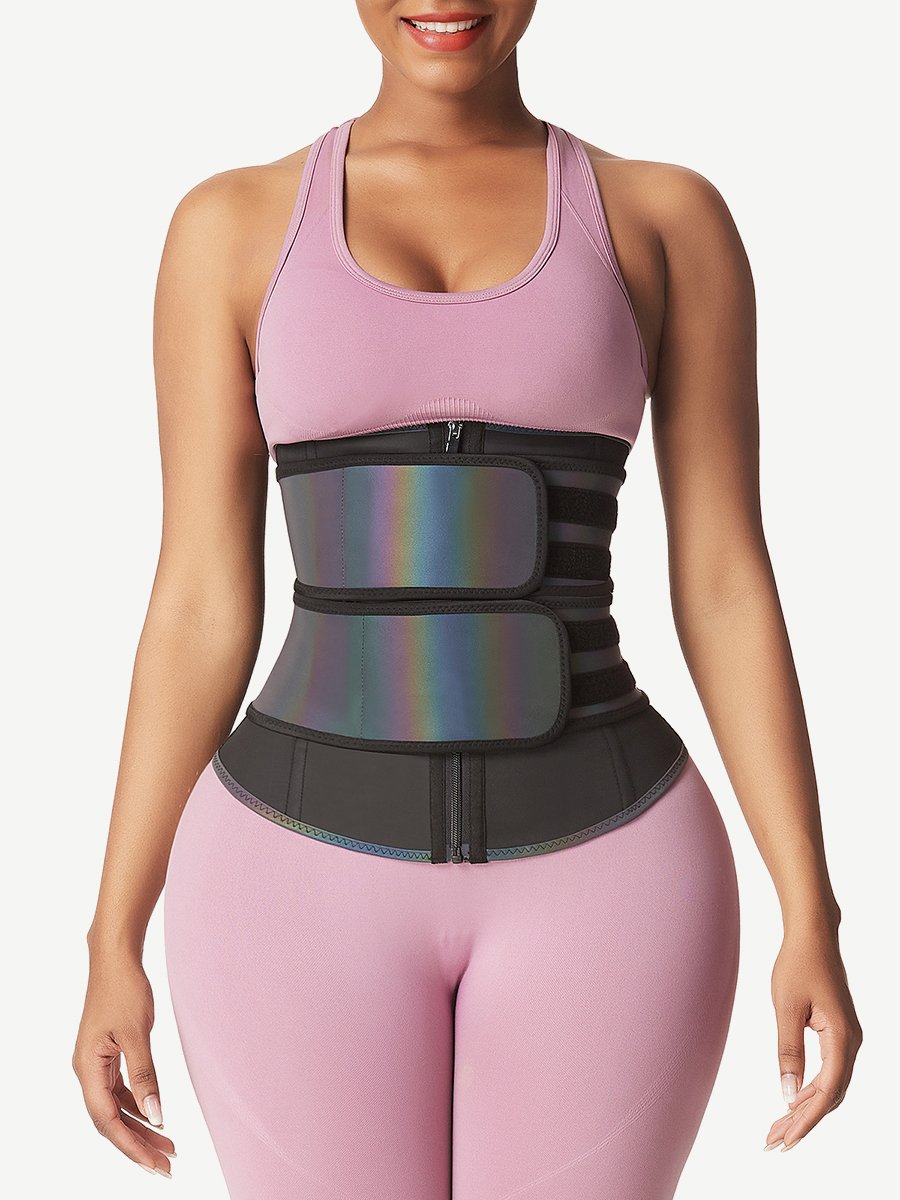Relective Latex Waist Trainer Zipper Double Belts 7 Steel Bones Curve Shaping