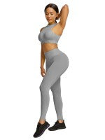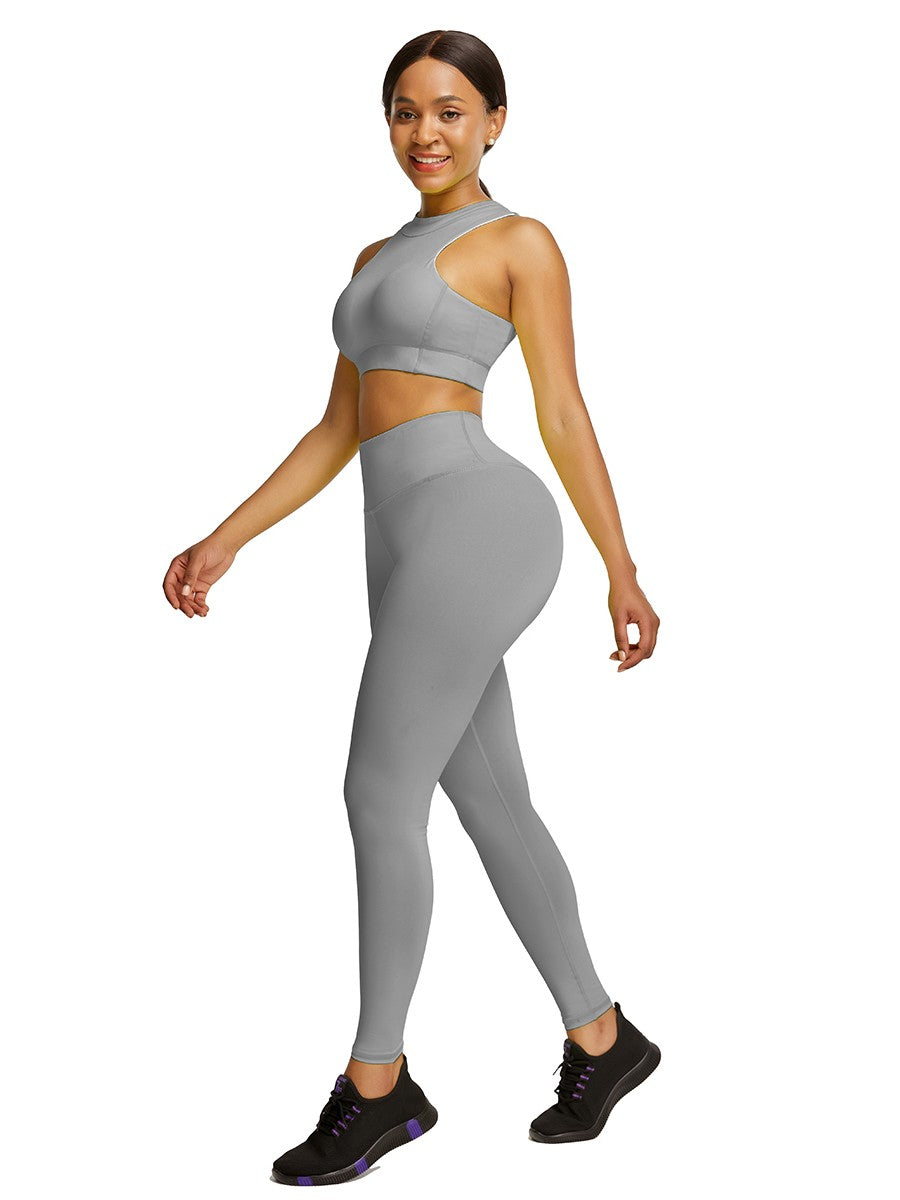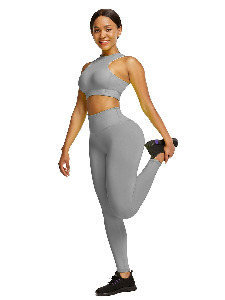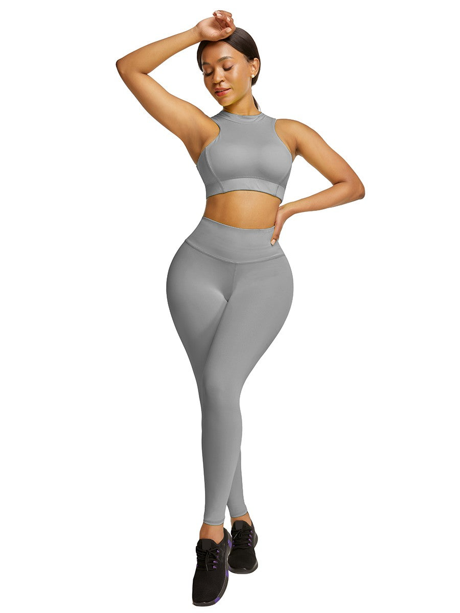 Every casual moment in the gym in this Elastic Gray High Waist Yogawear Set Crop Sleeveless For Runner, simple fashion brings an outstanding sport curve.