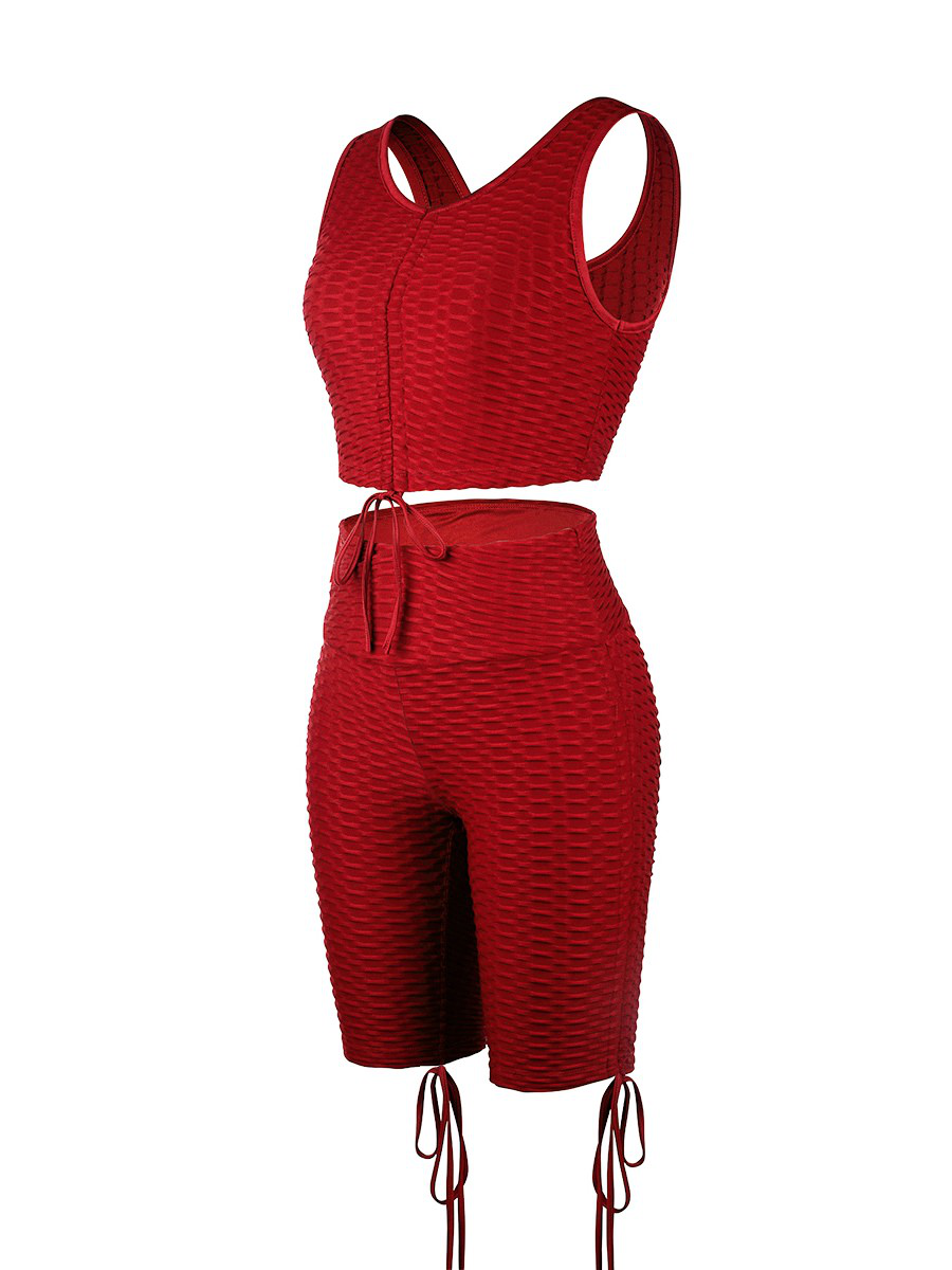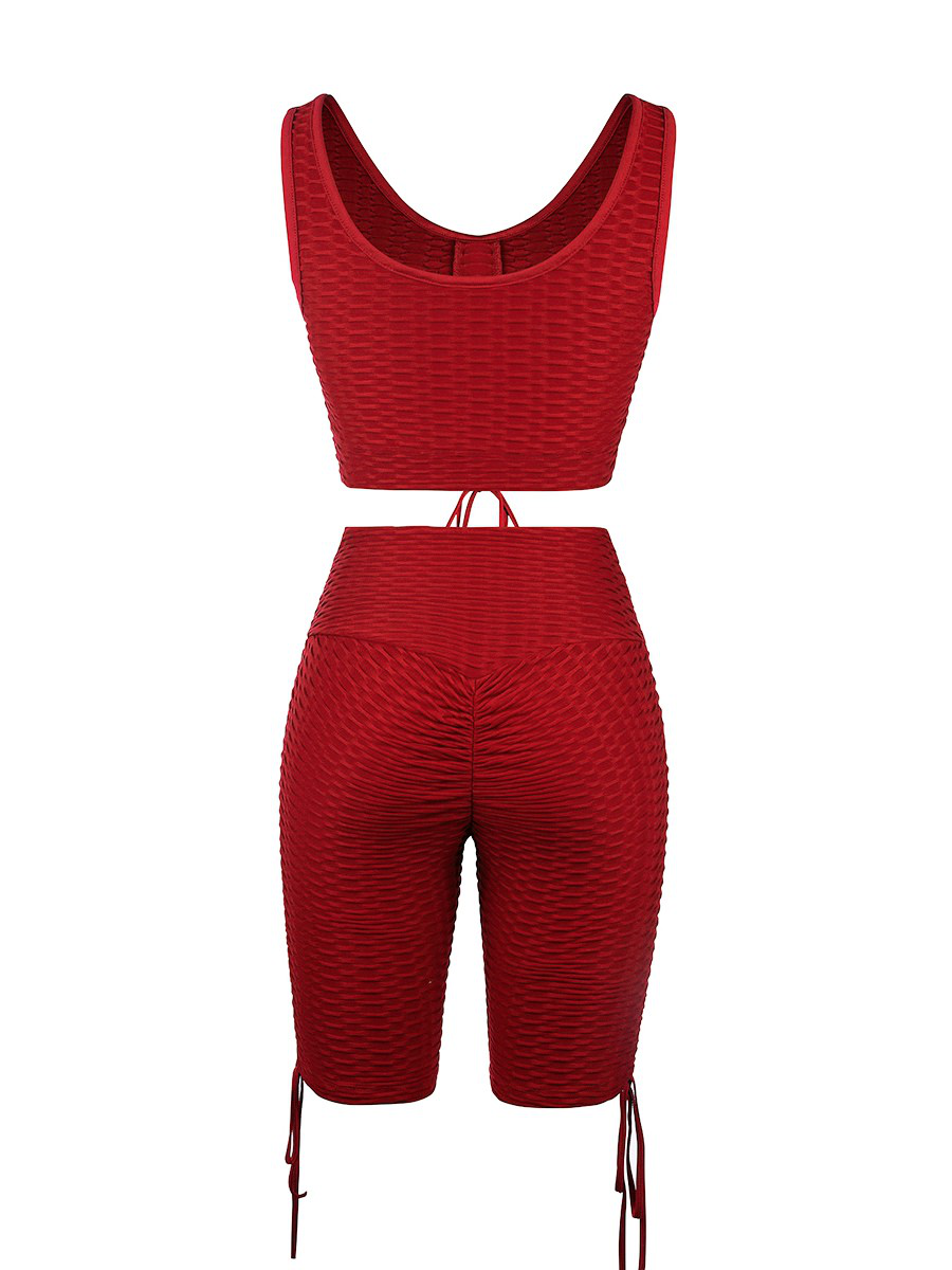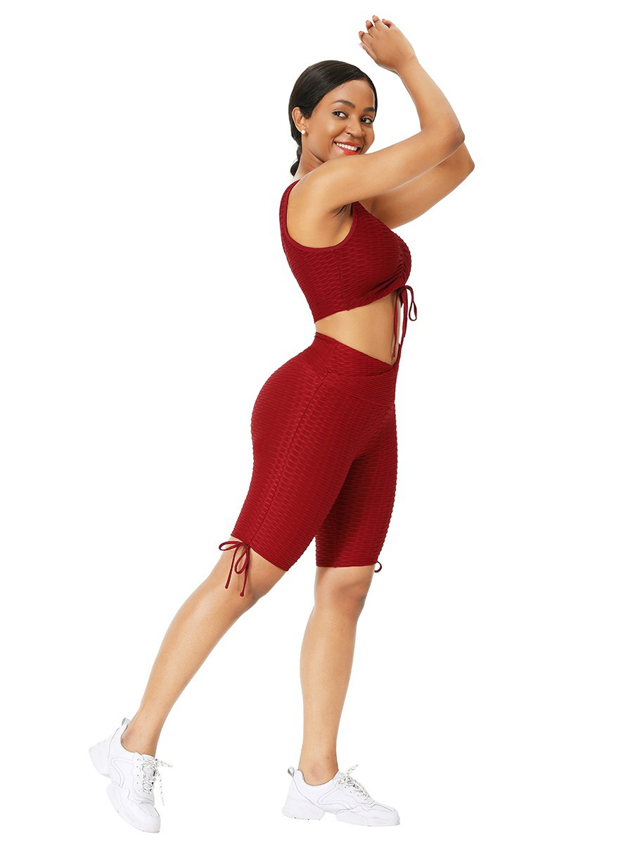 With the Wine Red Wide Strap Thigh Length Sweat Suit Running Outfits, you’ll sport a chic look that’s perfect for wearing before, during and after a workout.