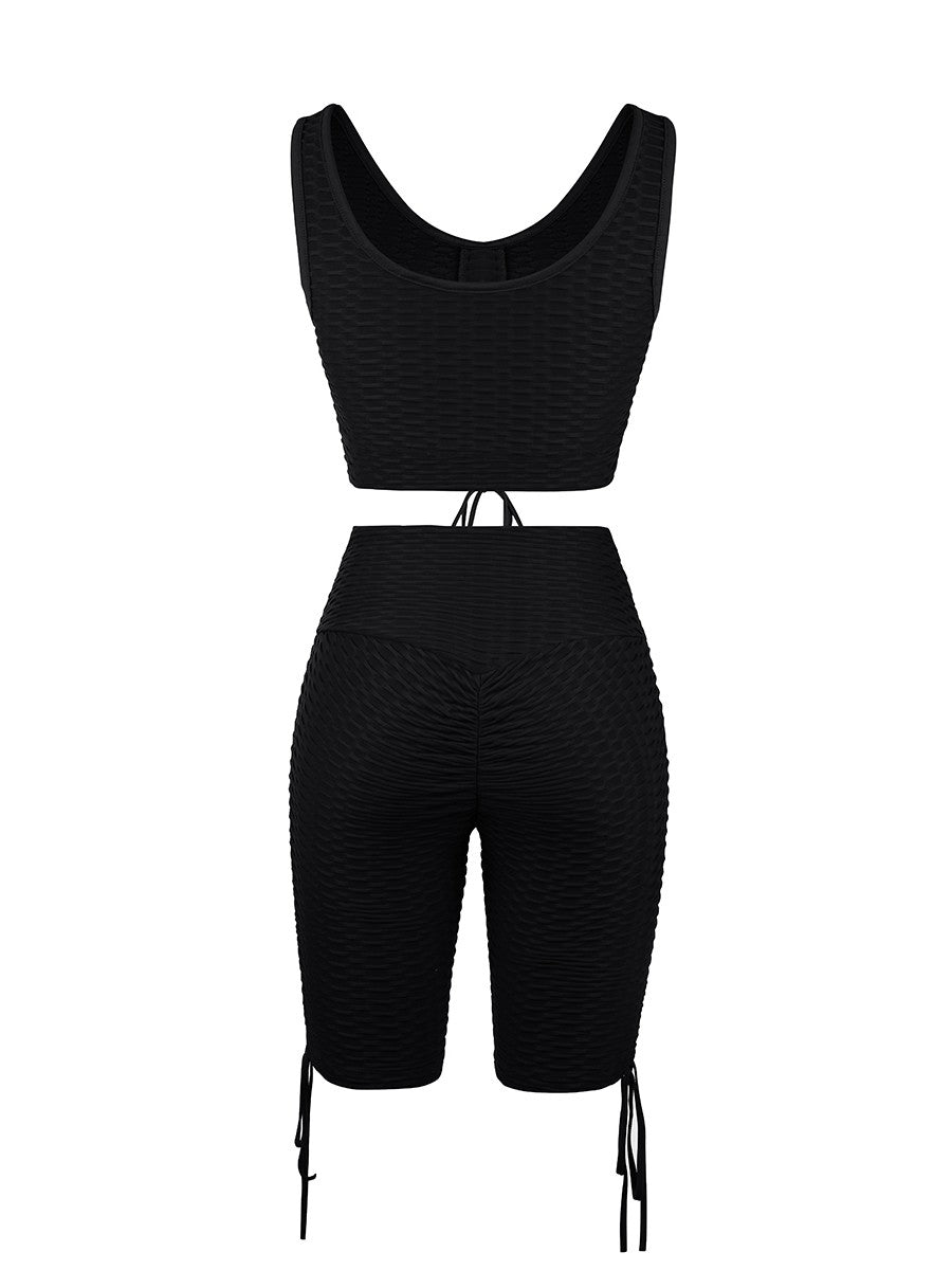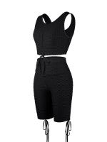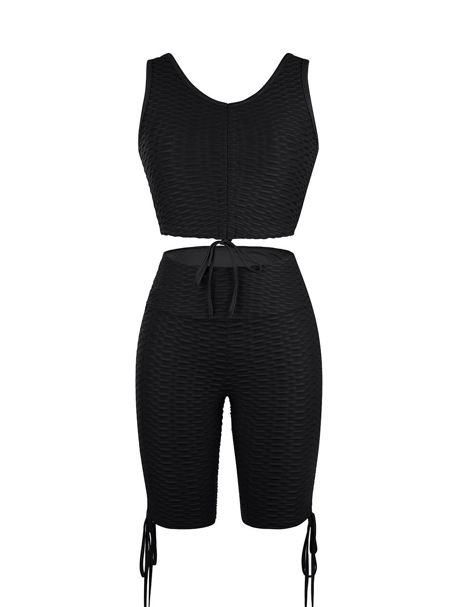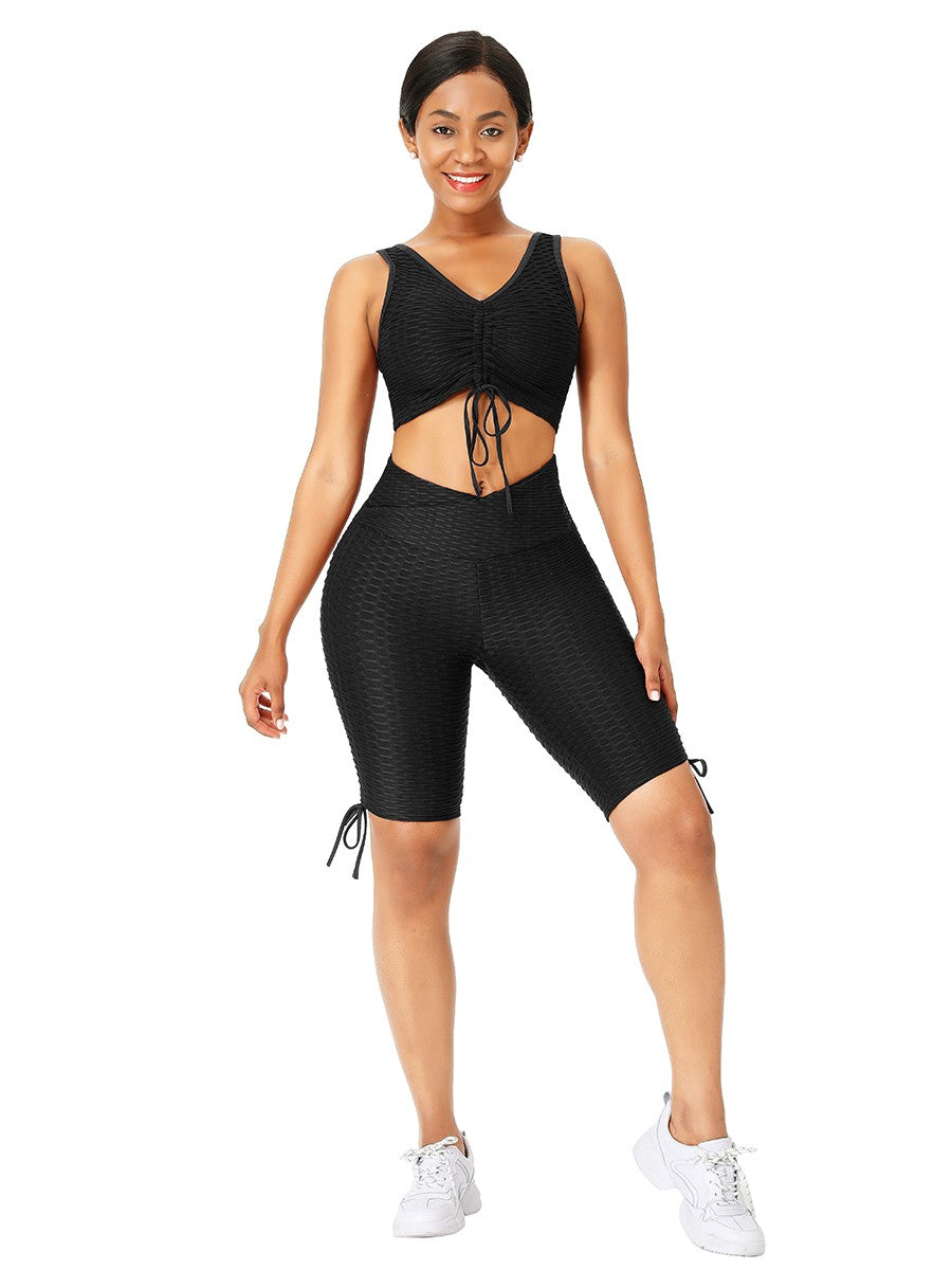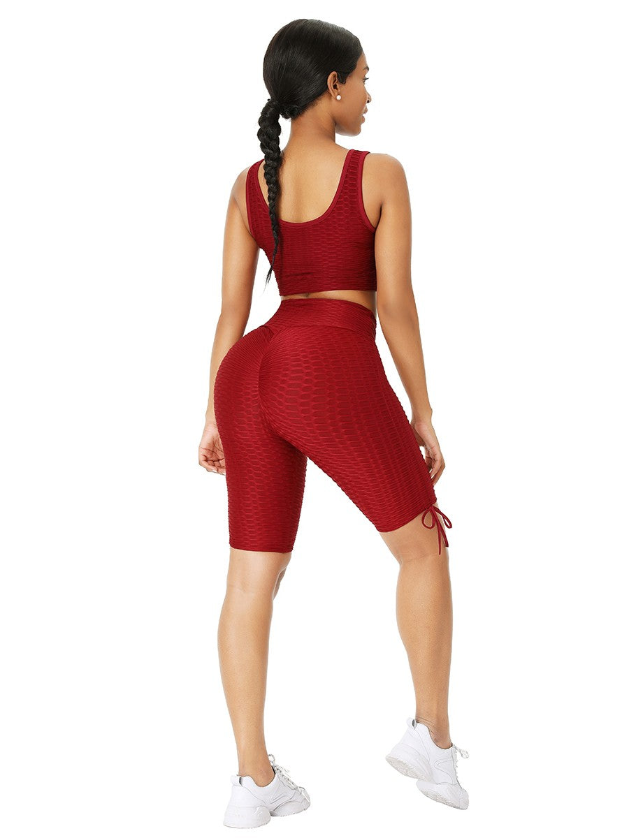 With the Wine Red Wide Strap Thigh Length Sweat Suit Running Outfits, you’ll sport a chic look that’s perfect for wearing before, during and after a workout.