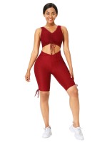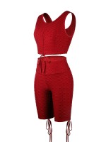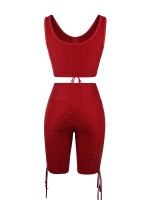 Wine Red Wide Strap Thigh Length Sweat Suit Running Outfits