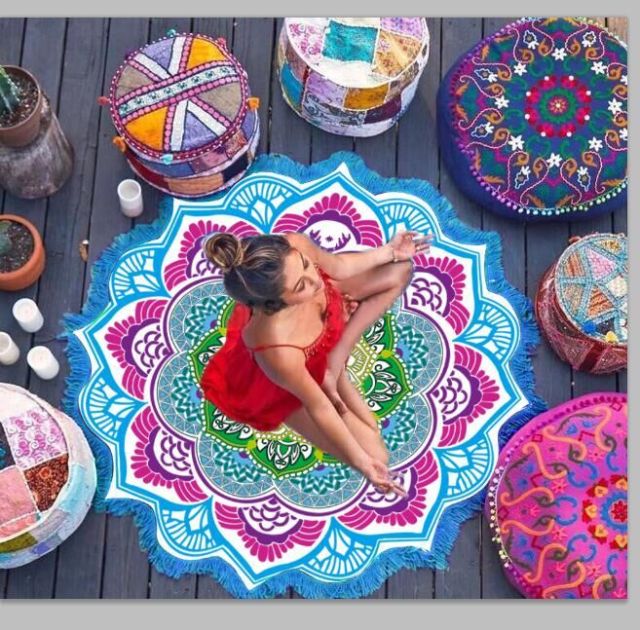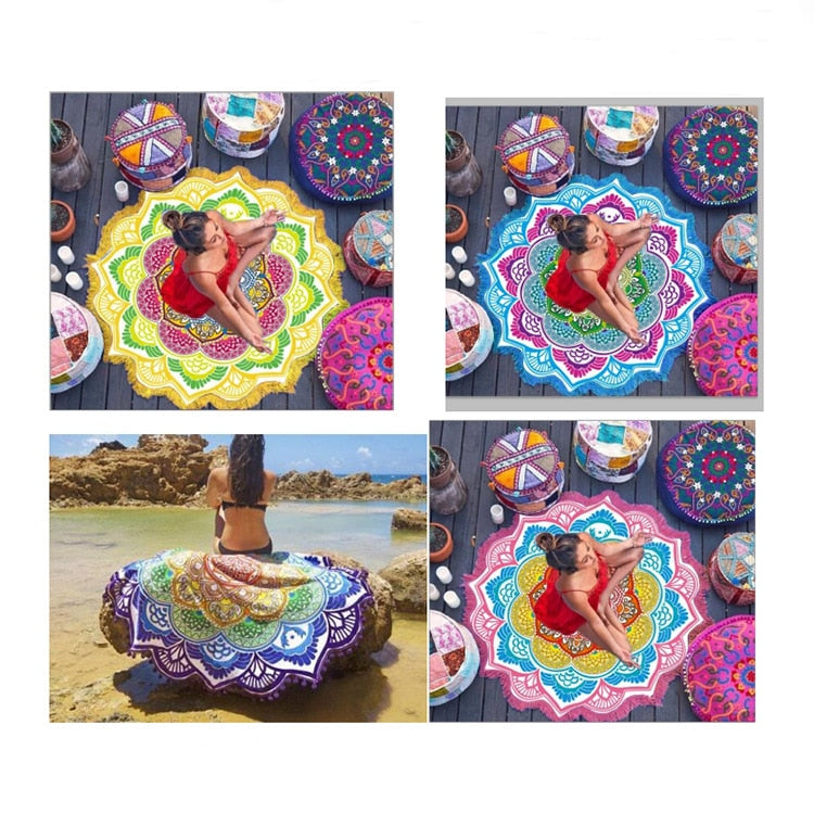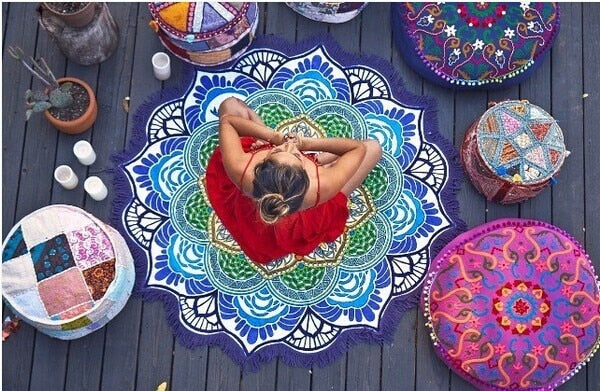 Yoga Mat Chakra Tassel Round Beach Towel