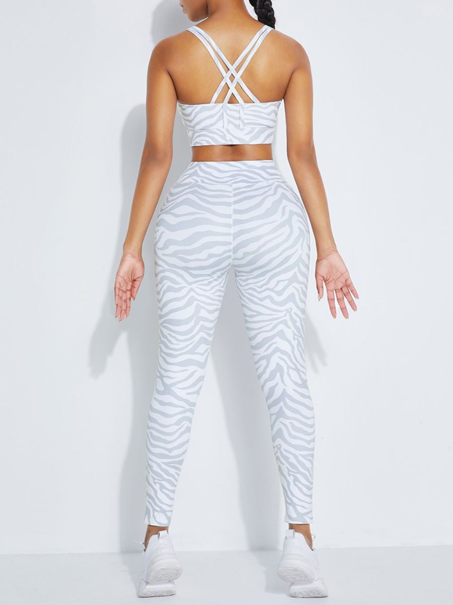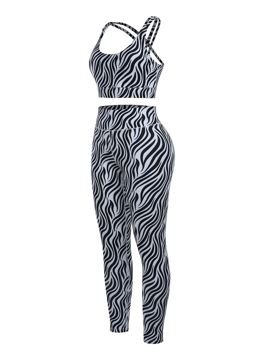 Zebra Print Yoga Outfit High Waist Strap Snug Fit