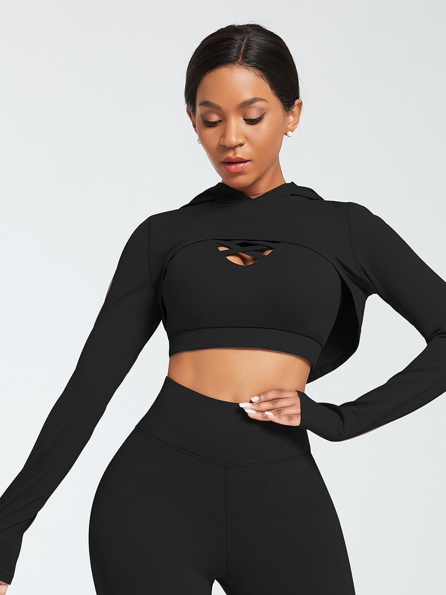 Black Hooded Neck Detachable Cups Crop Top Elastic Material